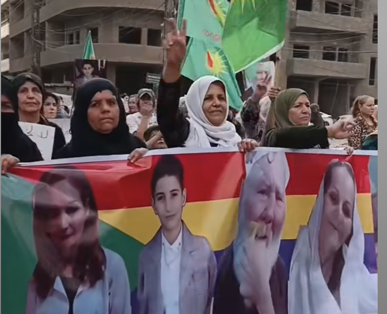 الصورة هي لمظاهرات في مناطق قسد ضد جرائم حكومة الجولاني الجهادية  بحق المواطنين الدروز….
