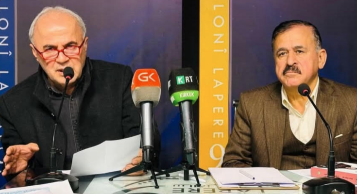 اليوم السبت المصادف 2026/1/31 اقيم في قاعة صالون صفحة 9 العائد لمكتب الاعلام والتوعية المركزي للاتحاد الوطني الكردستاني فرع أربيل، مراسيم حفل تعريف كتاب